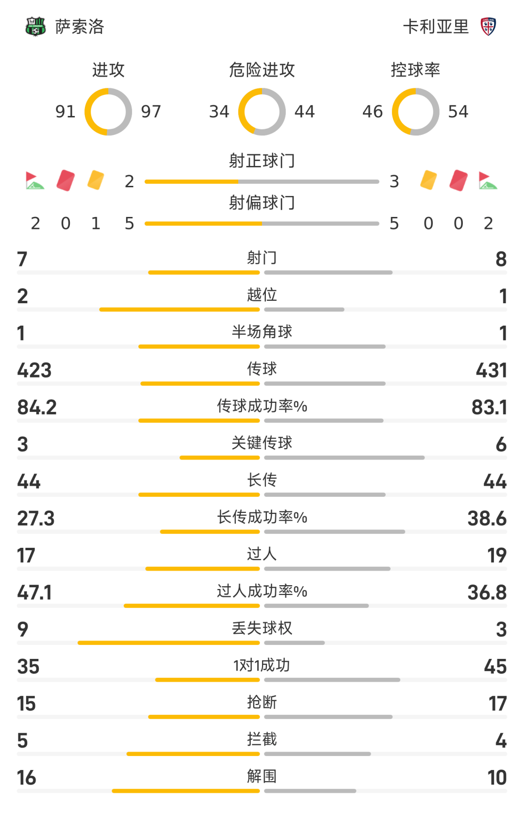 25/26赛季意甲联赛第31轮,萨索洛2-1战胜卡利亚里。全场比赛,皮纳蒙蒂、加西亚破门建功,埃斯波西托破门难救主。
