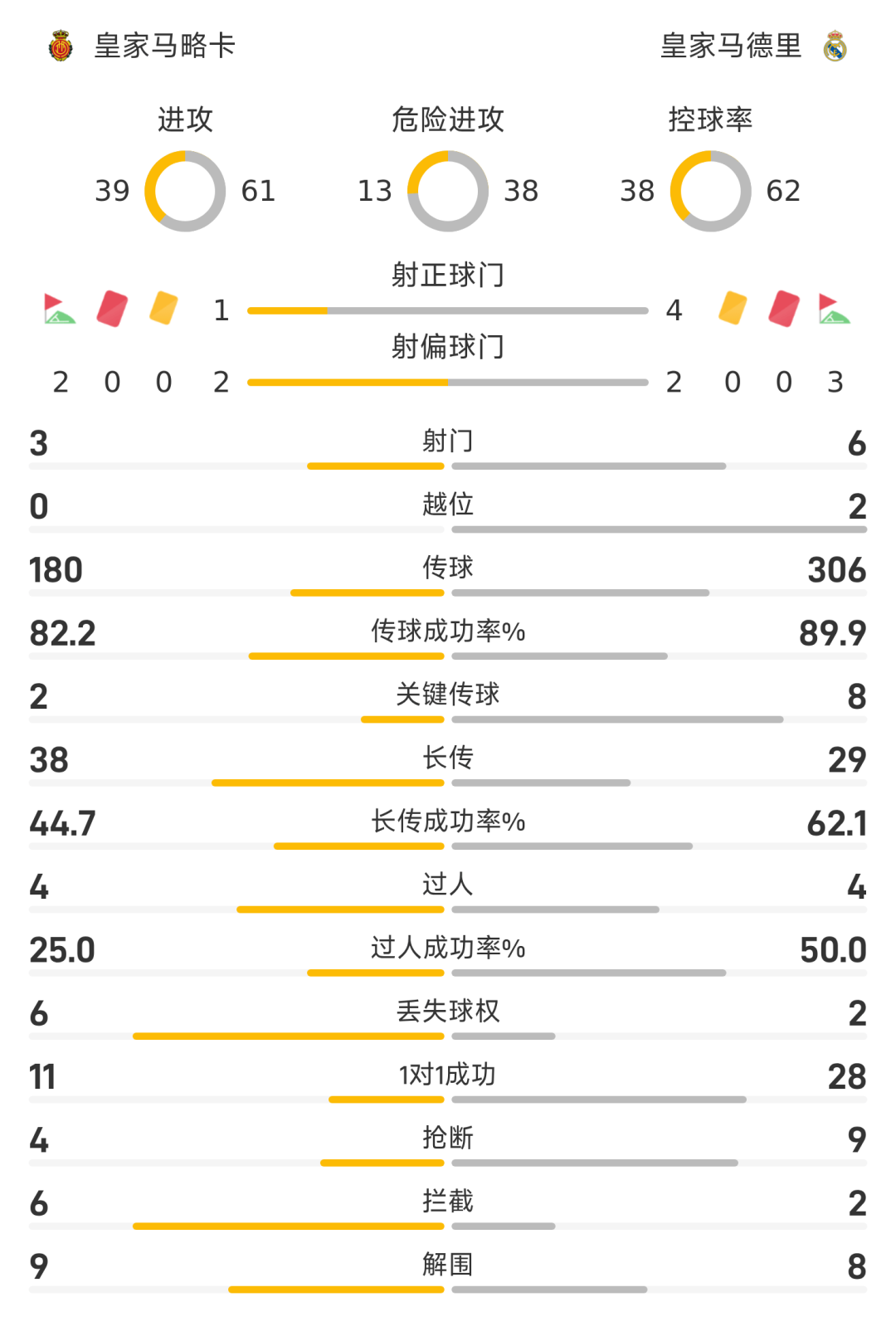 25/26赛季西甲联赛第30轮,皇家马略卡迎战皇家马德里。姆巴佩多次制造威胁但未能破门,莫拉内斯推射破门打破僵局。半场战罢,双方比分暂为皇家马略卡1-0皇家马德里。