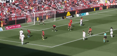 41’莫拉内斯近距离推射打破僵局,马略卡1-0领先皇马