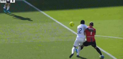 22’姆巴佩倒地情况下起脚打门,球被挡出底线