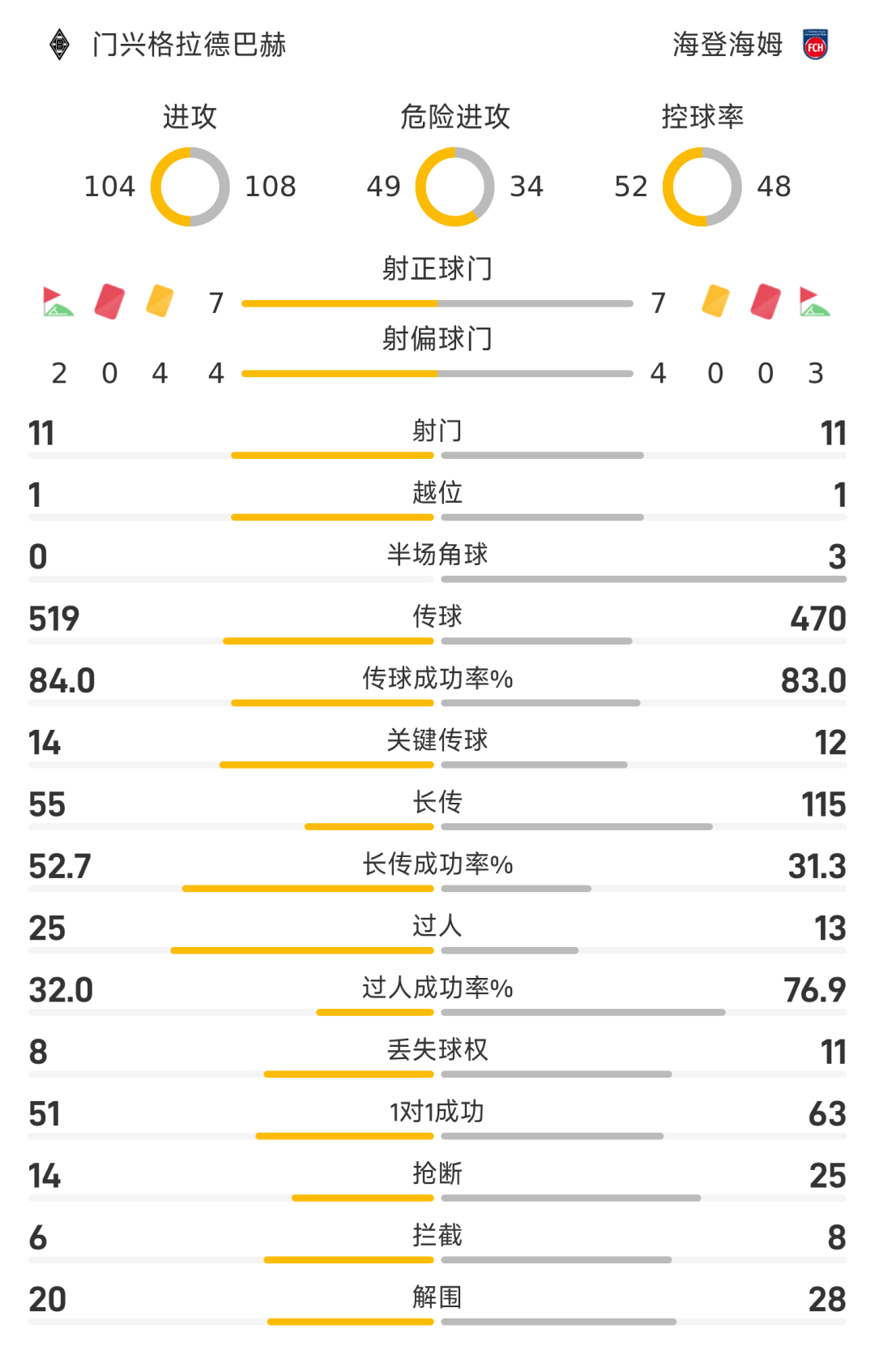 25/26赛季德甲联赛第28轮,门兴格拉德巴赫2-2战平海登海姆。全场比赛,莫希亚、霍诺拉特、曼卡、布斯策破门建功。