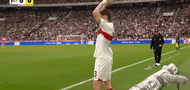 26’斯图加特边路手抛球掷入禁区,昂达夫转身抽射攻门高出