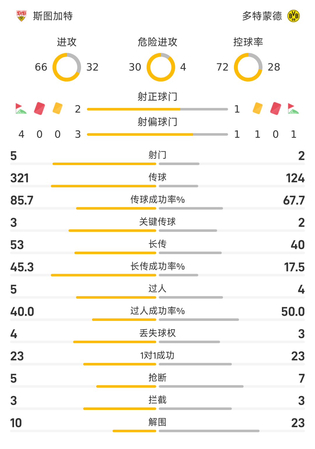 43’怎么办啊?斯图加特半场围攻,上半场多特仅一脚射门