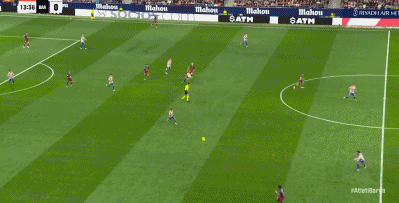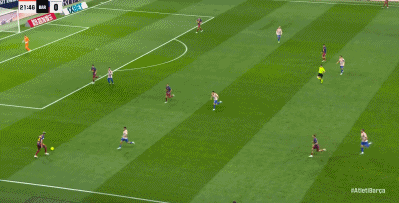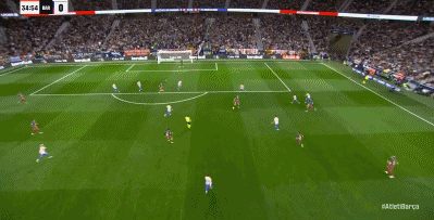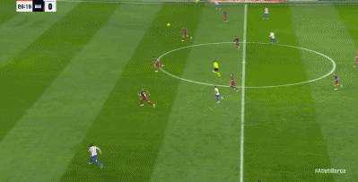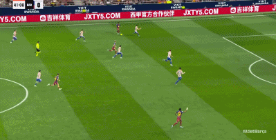 37’小西蒙尼反越位单刀破门激情滑跪庆祝,马竞暂1-0领先巴萨