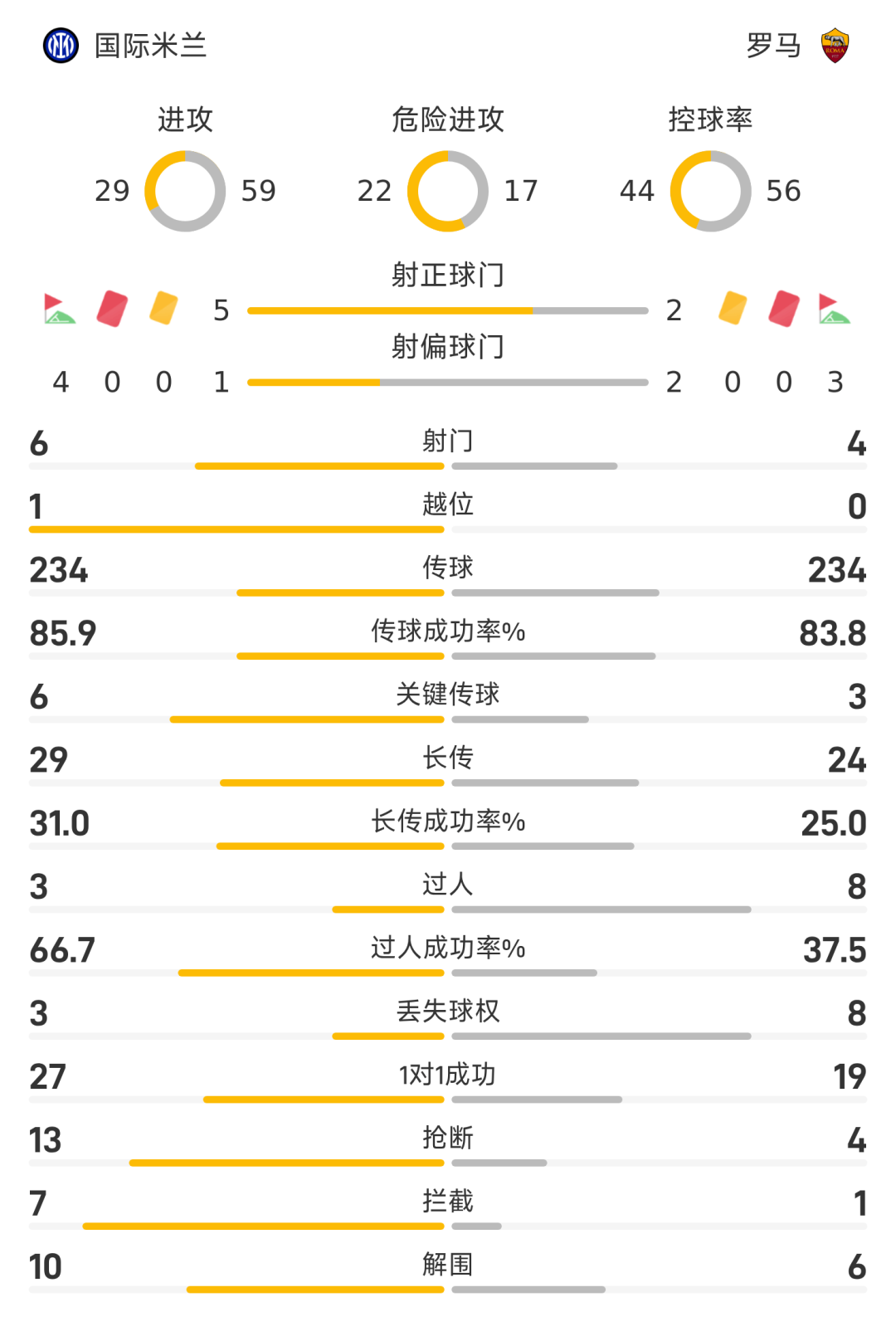 40’曼奇尼门前接应传中冲顶破门,罗马1-1国米