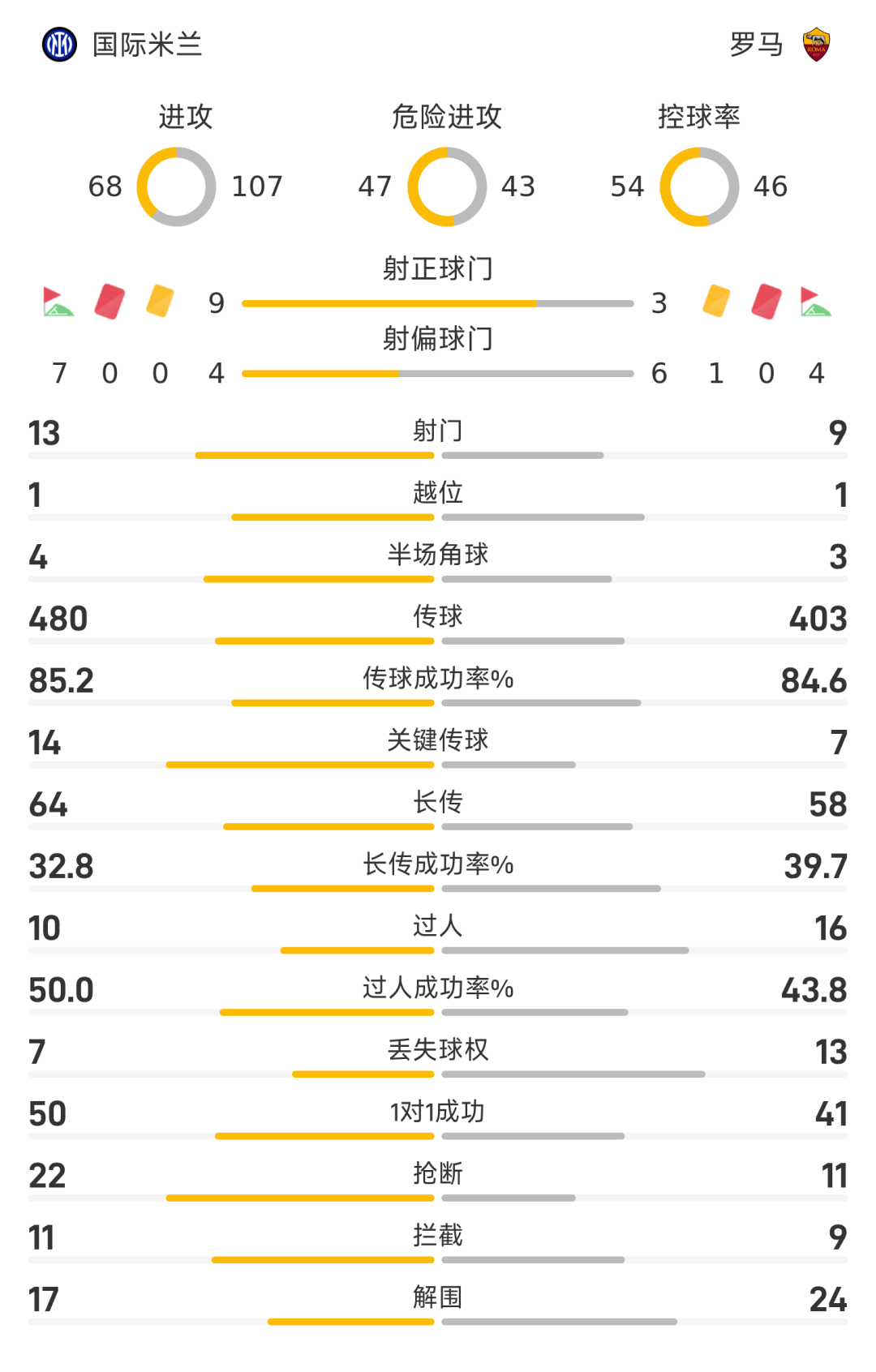 40’曼奇尼门前接应传中冲顶破门,罗马1-1国米