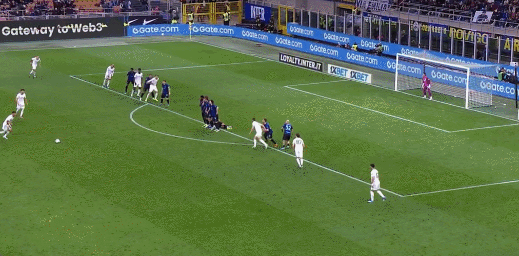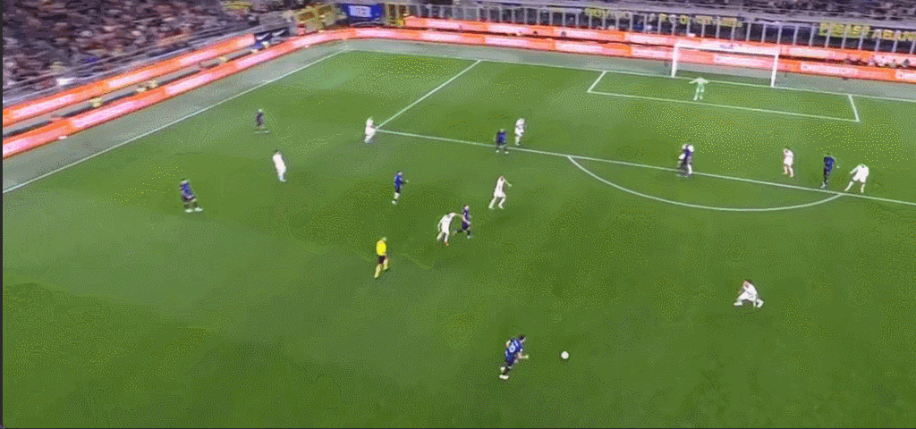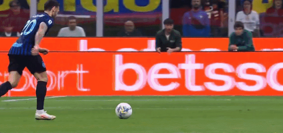 45+2’石破天惊!恰尔汗奥卢远射世界波破门,国米2-1罗马