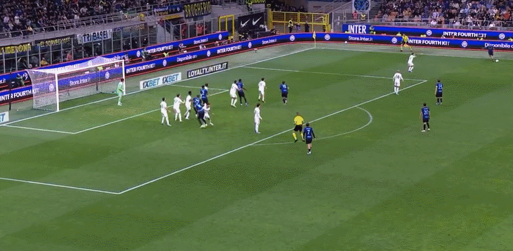 55’恰尔汗奥卢角球传中,图拉姆门前争顶破门,国米4-1罗马