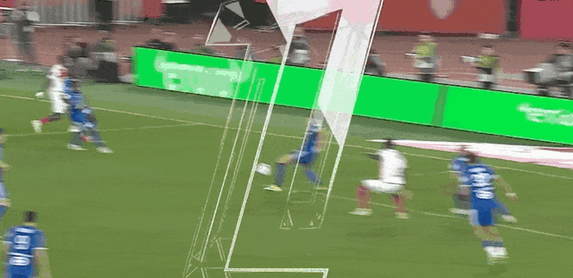 90+4’阿丁格拉单刀过掉门将,随后失去平衡打空门击中边网