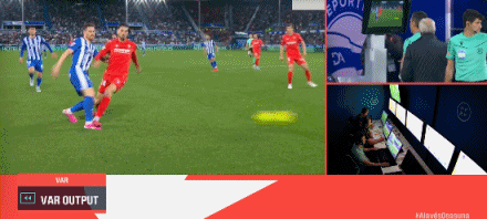 41’巴尔哈出现打排球动作,裁判判罚手球黄牌