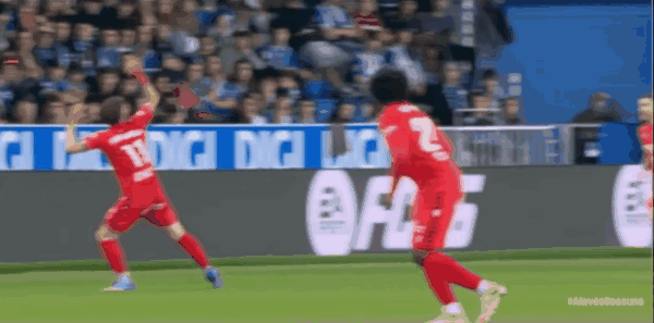 90+3’奥桑贝达在替补席上对裁判有不满,被红牌罚下