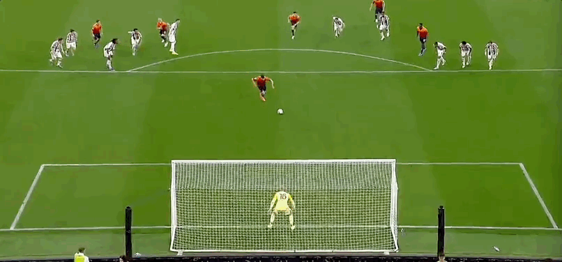 74’布雷默禁区线上犯规,主裁判观看VAR后改判点球