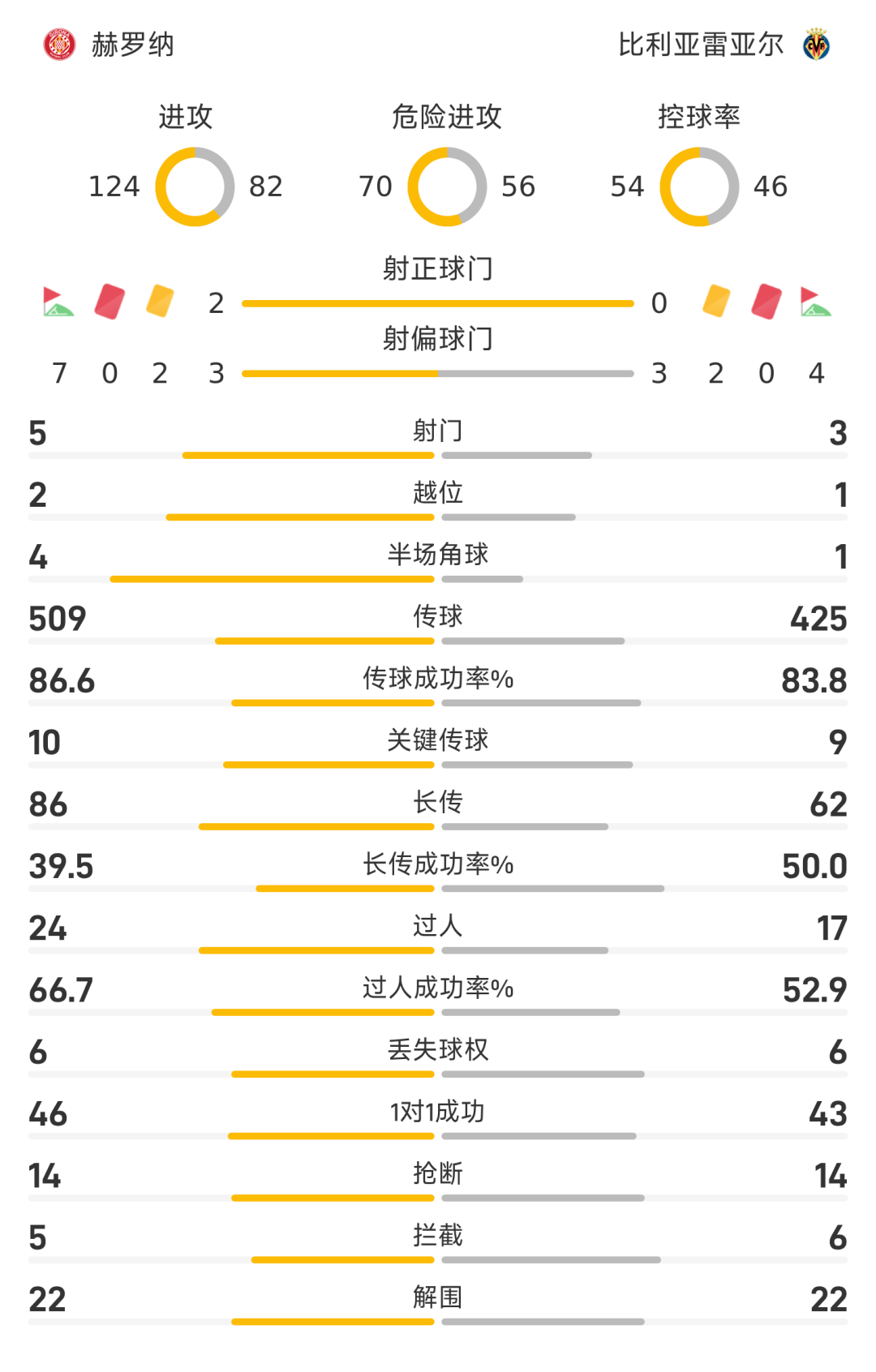 45+1’纳瓦罗自摆乌龙,赫罗纳1-0比利亚雷亚尔