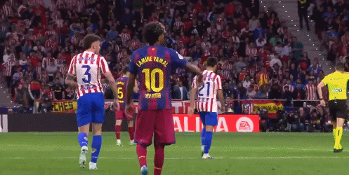 场上的亚马尔也看到这一幕,也用同样的方式回应助教,双方隔空指责。在亚马尔看来,助教德拉富恩特就是“多嘴”。