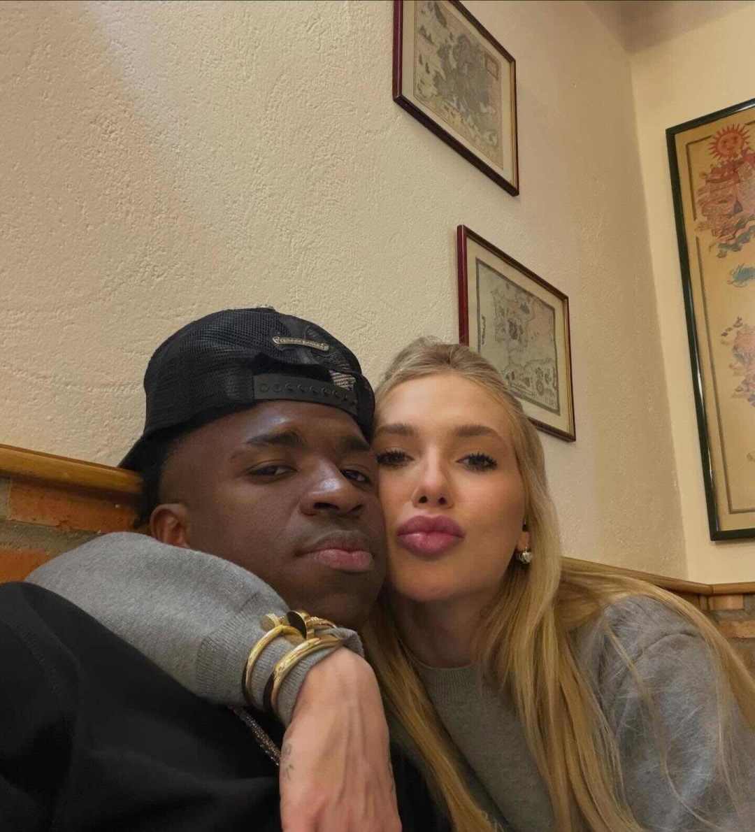 4月6日,维尼修斯更新社媒晒照配文为女友弗吉尼亚·丰塞卡庆祝生日。