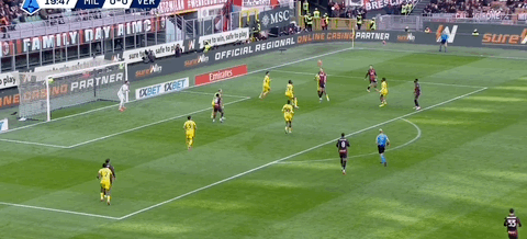 半场补时第11分钟,米兰前场右侧角球机会,皮球主罚到禁区,拉比奥特头球摆渡,后门柱位置普利西奇凌空推射破门,AC米兰1-0领先维罗纳。本赛季15次出场,美国队长打进10球,堪称球队进攻大腿。