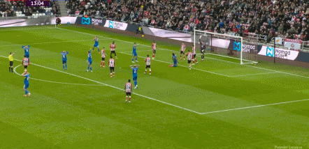 第34分钟,斯塔赫主罚角球送到门前,比约尔头球攻门角度太正被没收。