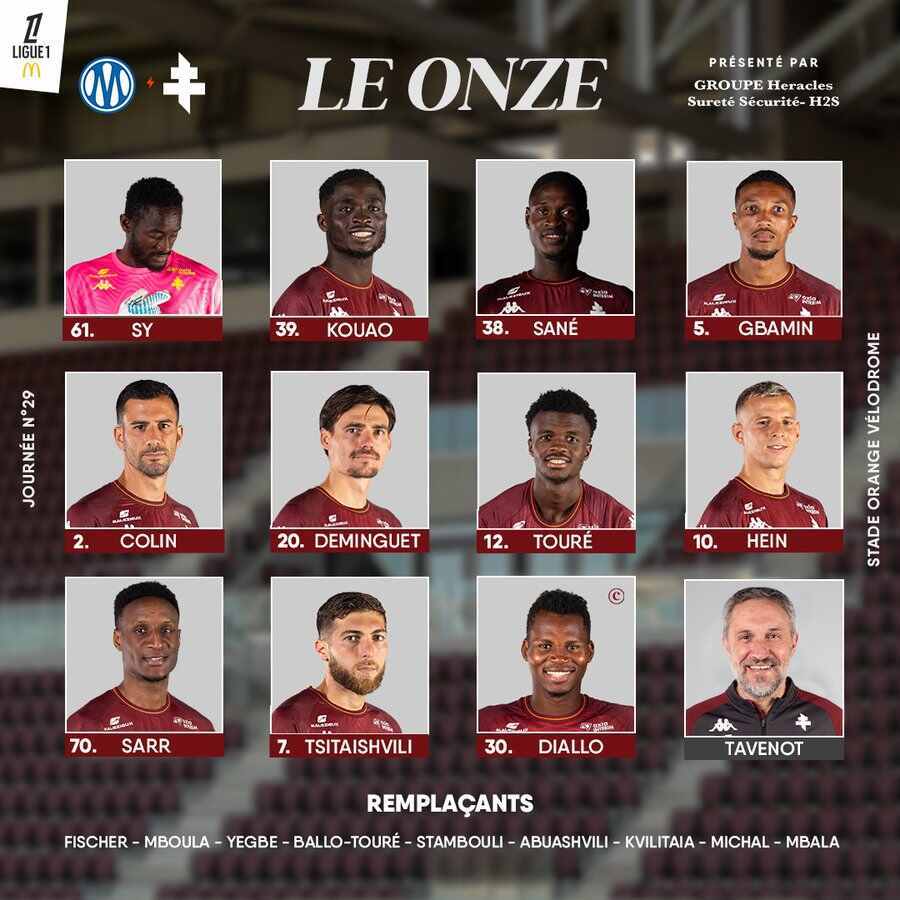 今晚法甲29轮,马赛迎战梅斯,双方首发名单公布。