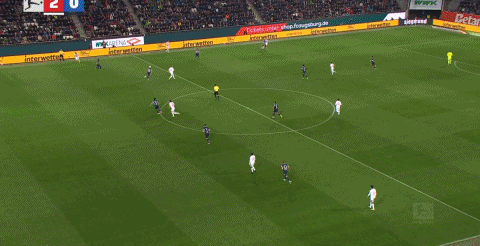 14’格雷戈里奇凌空斩破近角,奥格斯堡暂2-0领先霍芬海姆