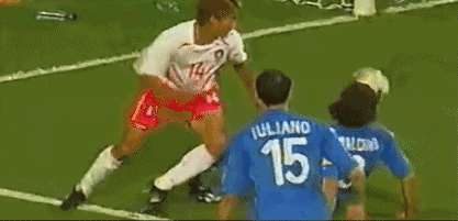 之后,比赛完全进入“黑色”阶段:托蒂正常拼抢被出示黄牌;科科被肘击血染赛场,主裁判无视;金泰映肘击皮耶罗,皮耶罗被吹犯规;崔镇哲推搡挑衅托蒂,托蒂被警告。李天秀脚踢马尔蒂尼头部;黄善洪背后飞铲赞布罗塔——韩国球员全部安然无恙。主裁判莫雷诺似乎不停地在暗示韩国队:你们可以更过份过分一些。