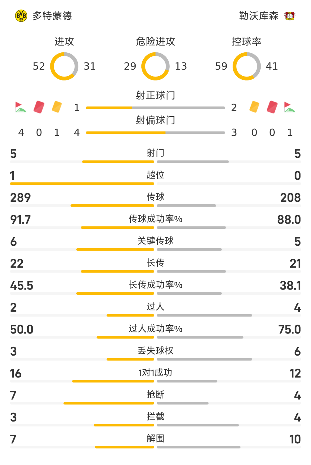 42’安德里希抢断后远射破门,勒沃库森1-0多特蒙德