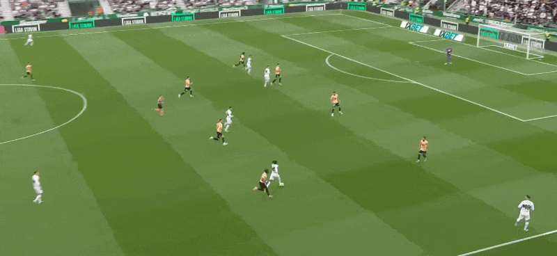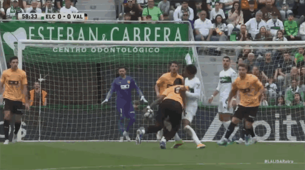 73’塞佩达反越位成功推射破门,埃尔切1-0瓦伦西亚