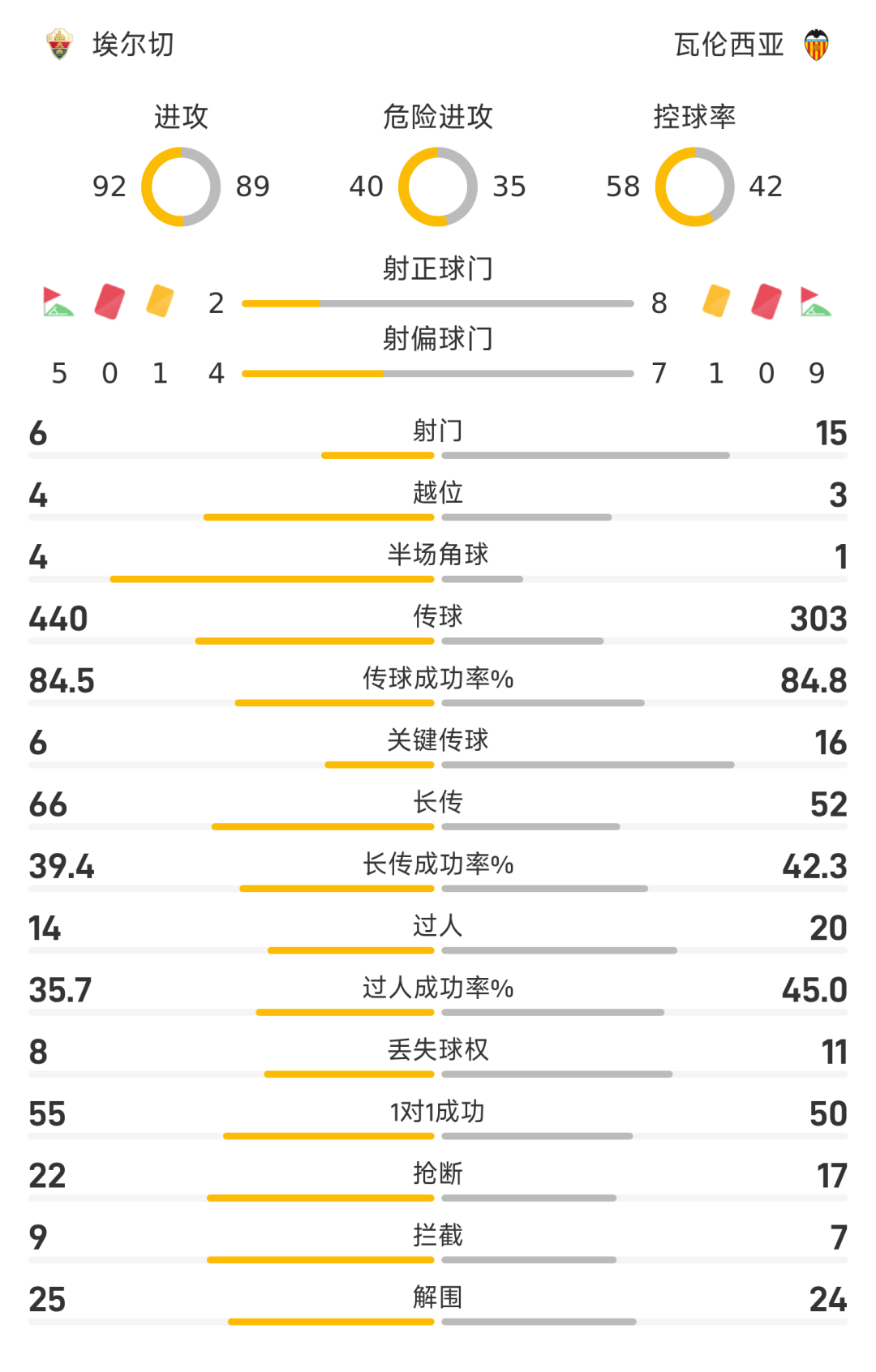 埃尔切首发阵容:1-迪图罗、21-佩特洛特、22-阿彭鲁伯、42-桑加雷(64’18-唐纳德)、14-费巴斯、15-莫伦特、11-瓦莱拉(82’23-丘斯特)、12-比利亚尔(72’3-佩德罗萨)、16-内托(72’24-塞佩达)、9-A席(64’20-罗德里格斯)、10-米尔