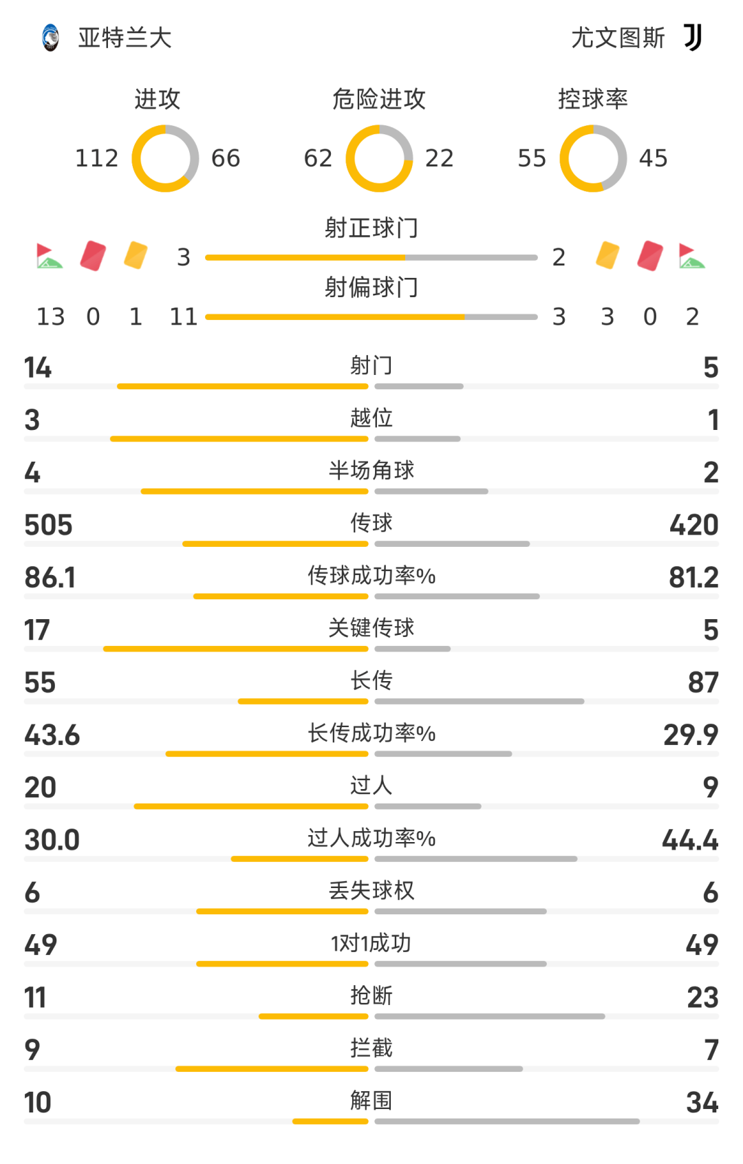 25/26赛季意甲联赛第32轮,尤文图斯1-0战胜亚特兰大。上半场比赛,两队互交白卷。易边再战,第48分钟,博加利用亚特兰大后卫以及门将失误,取得进球,帮助尤文取得1-0领先。余下的时间内,尽管亚特兰大发起猛攻,但仍未能取得进球,最终尤文客场1-0击败亚特兰大。