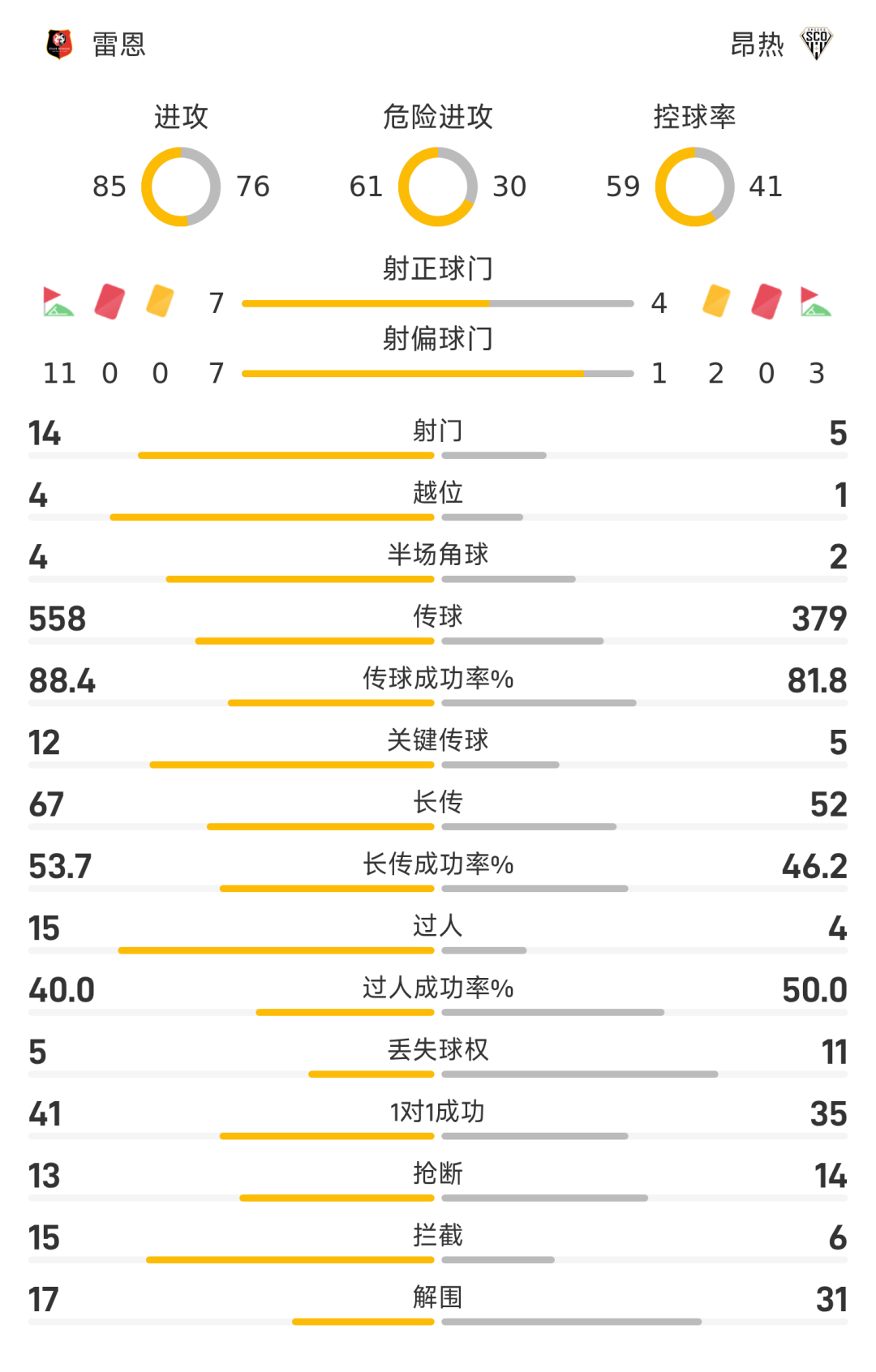 雷恩首发阵容:30-桑巴、3-布拉希尔、36-塞杜(73’95-弗兰科夫斯基)、26-梅林、48-布德拉尔、21-隆吉耶、10-布拉斯(85’18-纳吉达)、11-塔马里(73’65-穆基勒)、45-M.卡马拉、7-恩博洛(73’17-希曼斯基)、9-莱波尔