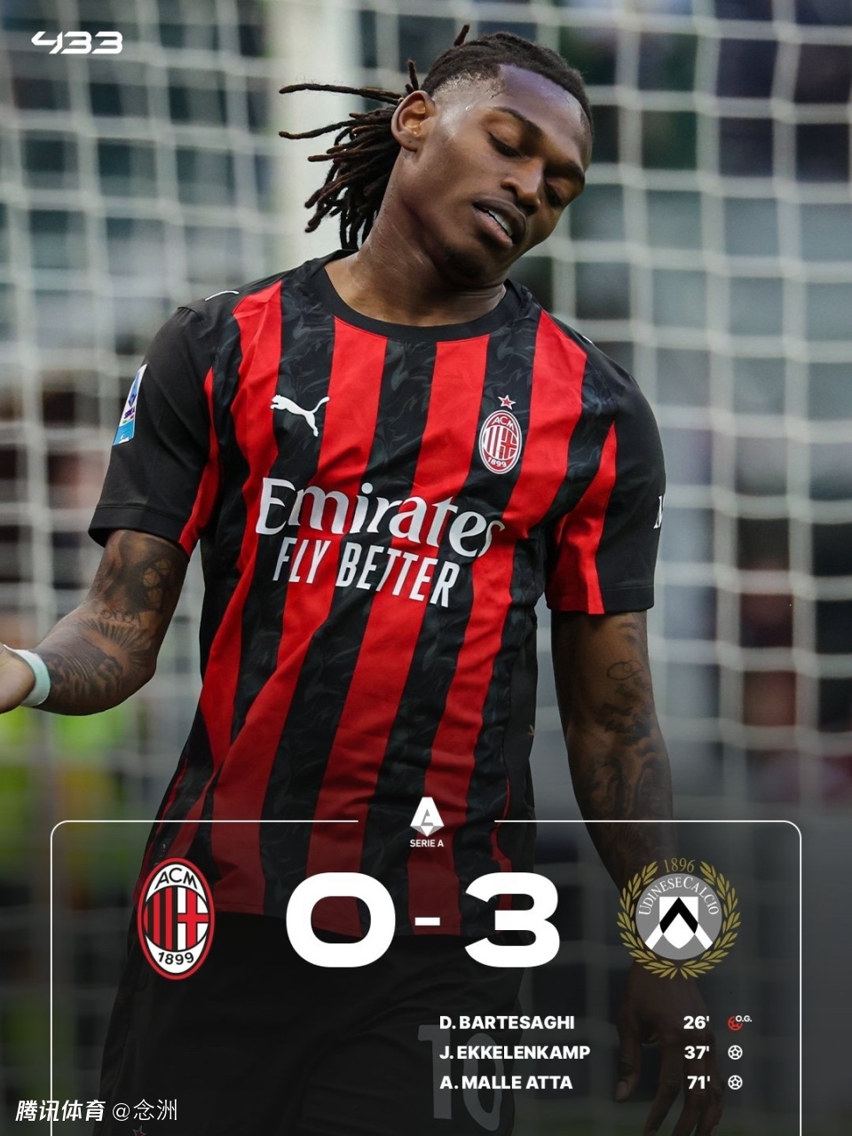 意甲第32轮,AC米兰客场0-3不敌乌迪内斯,遭遇两连败,先赛情况下积63分依旧排在第三。阿塔小角度爆射造成巴尔泰萨吉乌龙,埃克勒卡姆头球扩大比分,萨勒马科尔斯远射被扑后击中横梁,阿塔锁定胜局。