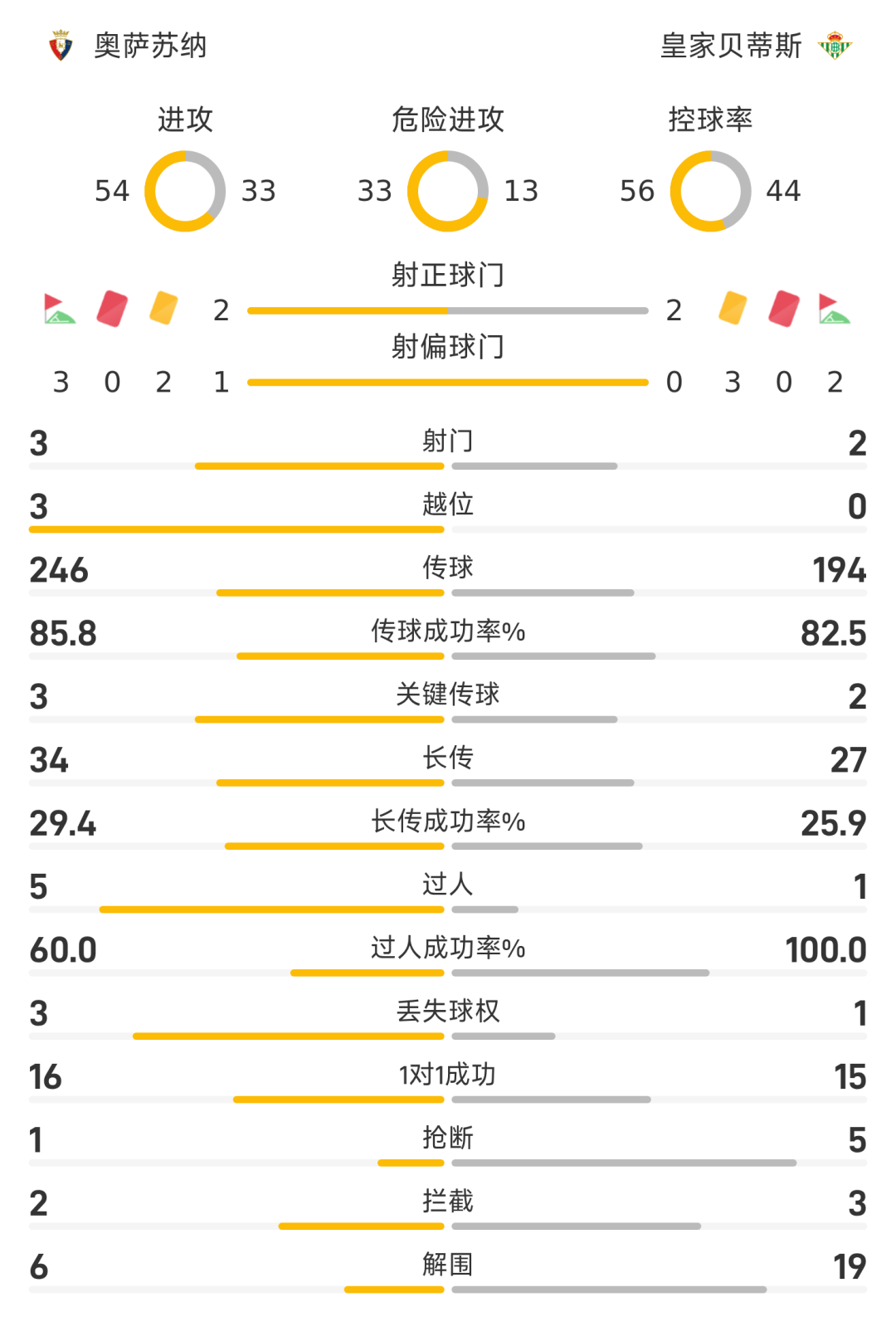 40’戈麦斯送点,布迪米尔主罚命中,奥萨苏纳1-1贝蒂斯