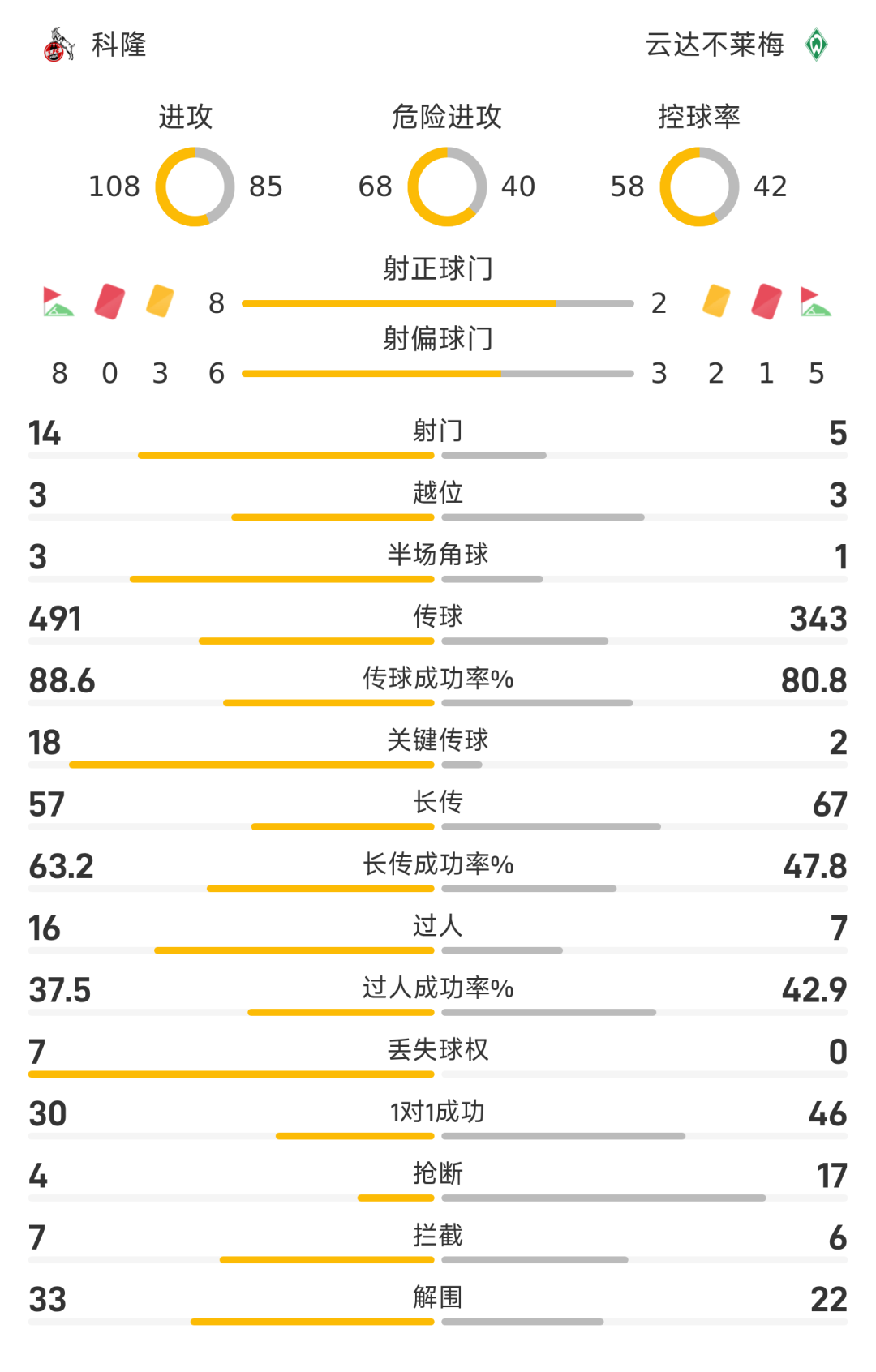 25/26赛季德甲联赛第29轮,科隆3-1战胜云达不莱梅。全场比赛,马拉、阿切破门建功,斯赫米德破门难救主,巴克豪斯自摆乌龙,芬德染红。