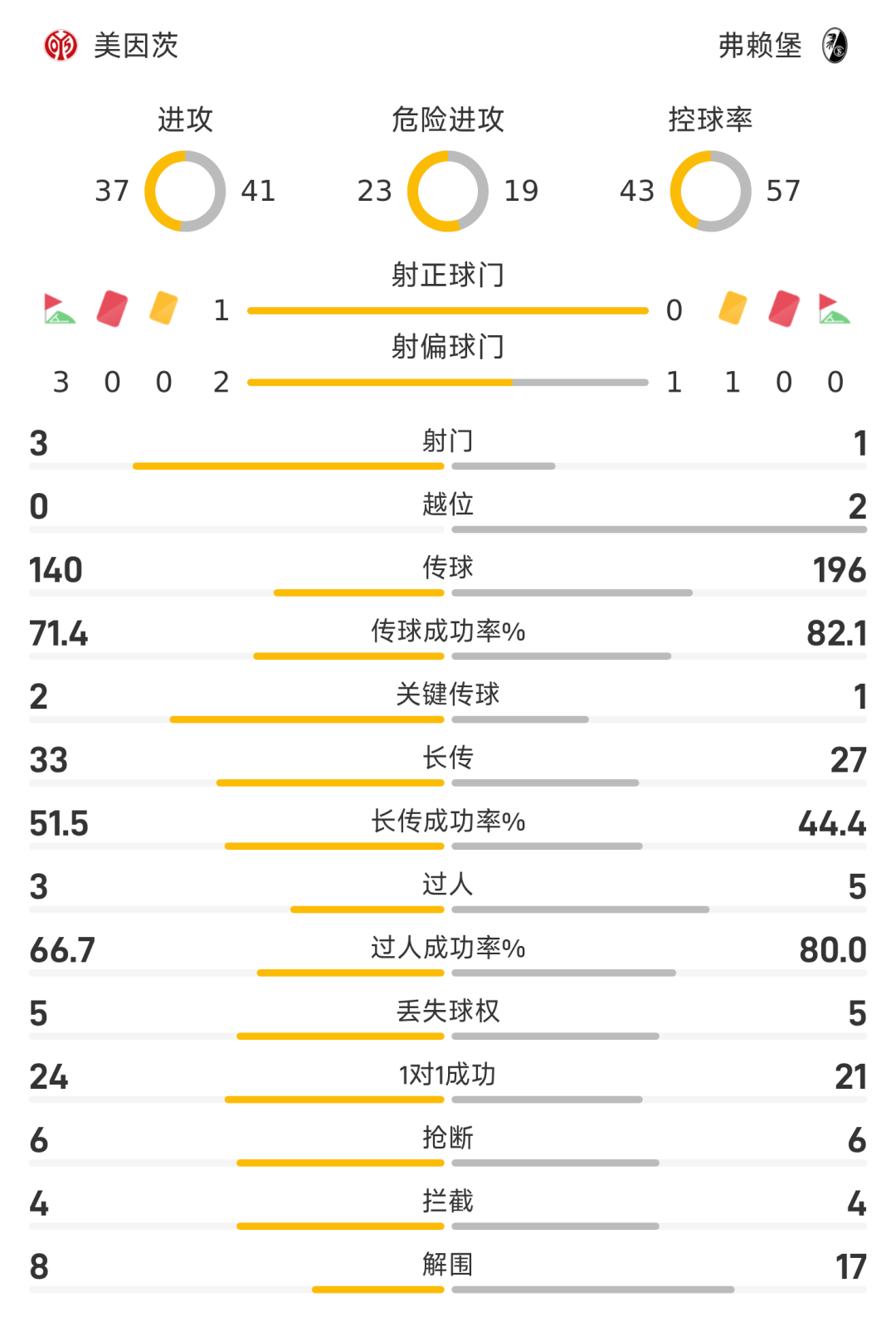 弗赖堡首发阵容:1-阿图博卢、30-冈特、28-金特尔、17-库伯勒、43-奥格布斯、9-赫勒、8-埃格施泰因、7-舍尔汉特、22-伊里埃、44-曼赞比、31-马塔诺维奇
