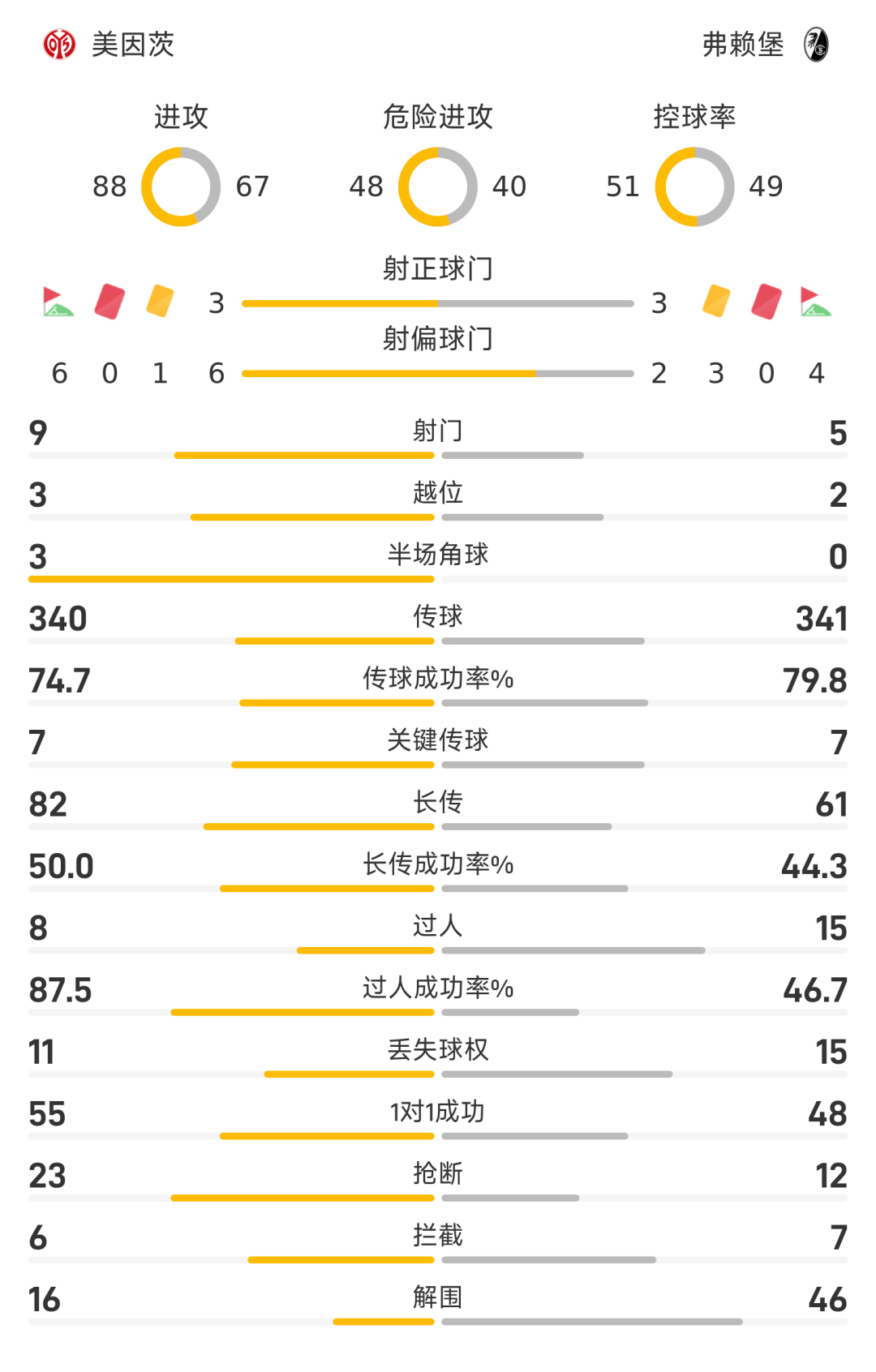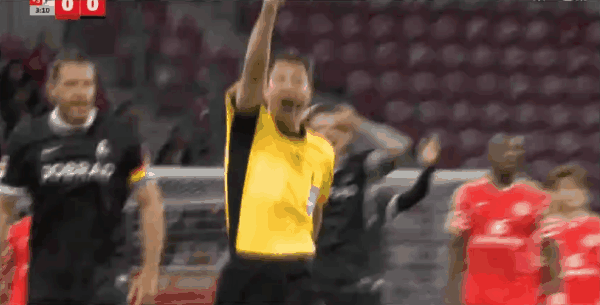 45+4’弗赖堡球员拖延比赛时间发边线球,主裁直接吹半场结束