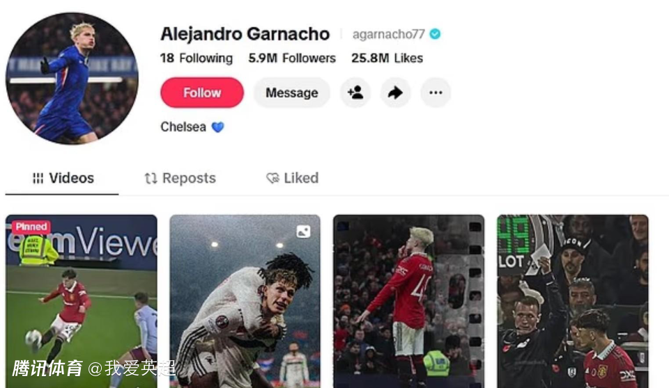 北京时间4月14日,21岁的切尔西边锋加纳乔,清空其社交账号中所有切尔西相关内容,仅保留4条效力曼联时期的视频,不仅如此,他还转发了两条球迷制作的曼联怀旧向剪辑,其中一条内容正是向他本人致敬。