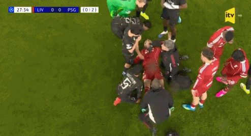 他倒地时痛苦捂着脚踝、跟腱部位。随后担架进场帮助无法行走的埃基蒂克离场,下场时埃基蒂克在担架上双手捂脸,心态濒临崩溃,萨拉赫随后替补登场。