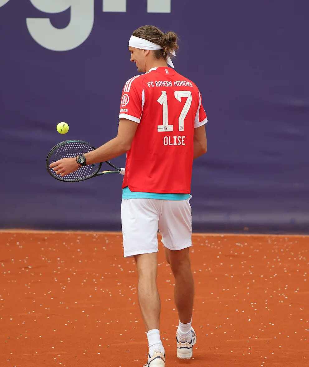 在昨日凌晨结束的欧冠1/4决赛中,拜仁凭借两回合总比分6-4淘汰皇马成功晋级四强,拜仁前锋奥利塞在补时阶段打入了杀死比赛悬念的进球。随后在今晚的慕尼黑网球公开赛男双比赛中,德国选手兹维列夫身穿着一件奥利塞的球衣亮相比赛。