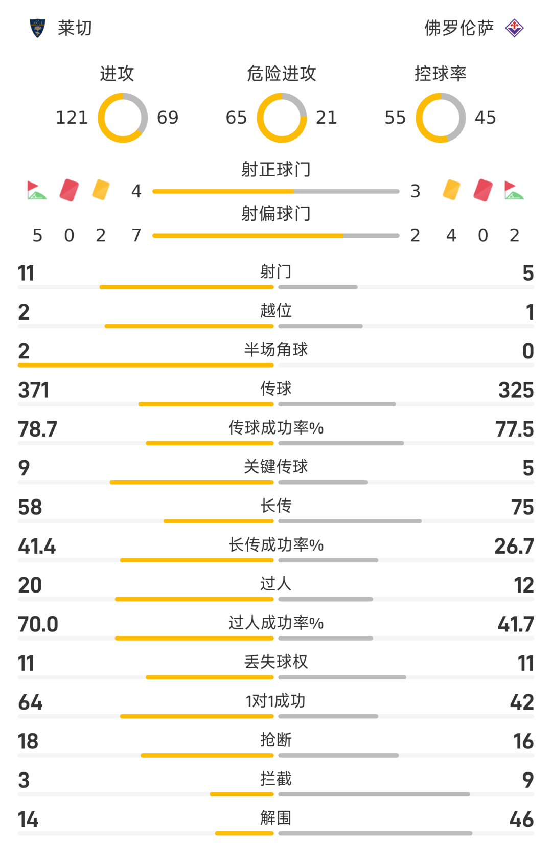 莱切替补阵容:1-弗吕希特尔、32-萨莫亚、3-纳德巴、18-吉恩、13-佩雷斯、14-赫尔加松、19-班达、6-萨拉、36-马奇温斯基、16-甘德尔曼、80-科瓦茨、28-戈特、9-斯图利奇