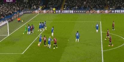第42分钟,布鲁克斯右路下底传中,切尔西禁区内风声鹤唳将球解围。