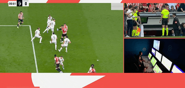 4’争议?托罗禁区内手球,主裁判回看VAR取消点球判罚