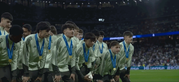 0’比赛开始前,皇马展现青年欧冠的冠军