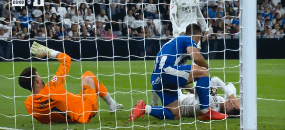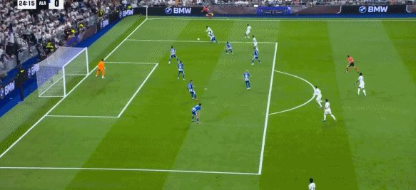 30’姆巴佩远射打球门近角破门, 皇马1-0阿拉维斯