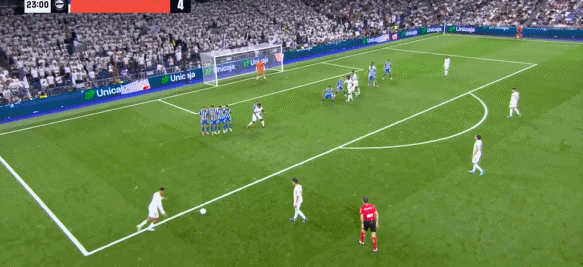 7’贝林禁区外选择远射,打在防守球员的身上弹出底线