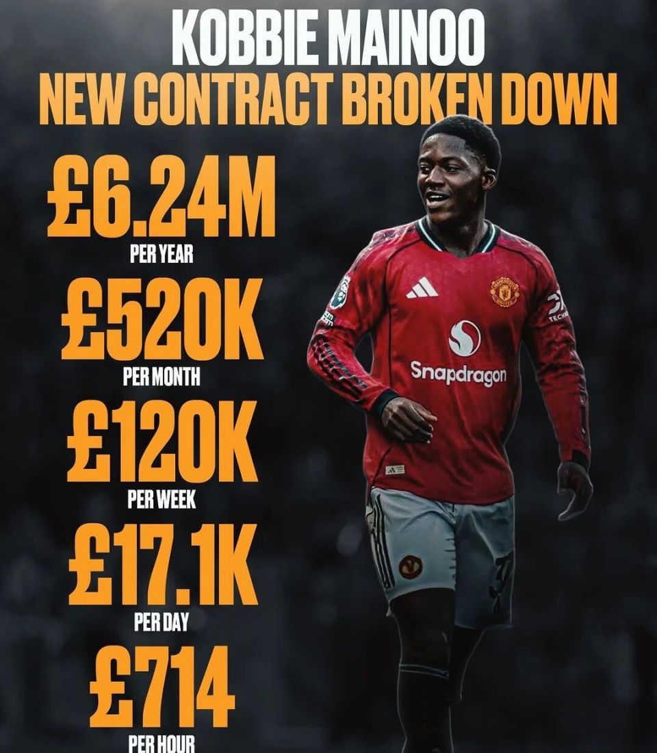 梅诺的现有合同签署于2023年2月,当时只有17岁。他的基本周薪只有2.5万英镑,但加上各种奖金可达5万英镑甚至8万英镑。现在,曼联跟队记者塞缪尔·拉克赫斯特披露,其新周薪预计可达15万英镑左右。