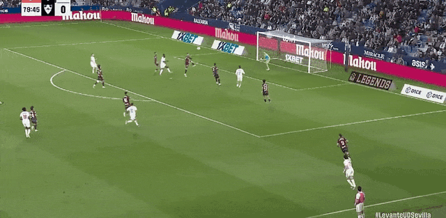 90+3’锁定胜局!罗梅罗反击推射空门得手,莱万特2-0塞维利亚
