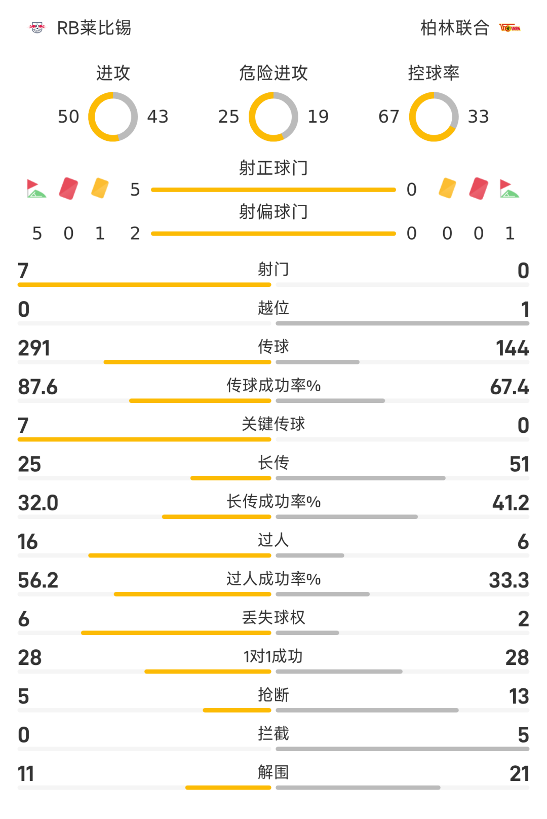 25’罗慕洛接应长传扛开防守单刀破门,莱比锡2-0柏林联合