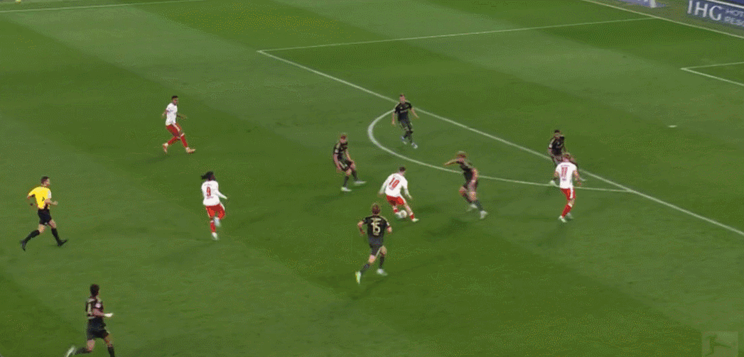 25’罗慕洛接应长传扛开防守单刀破门,莱比锡2-0柏林联合