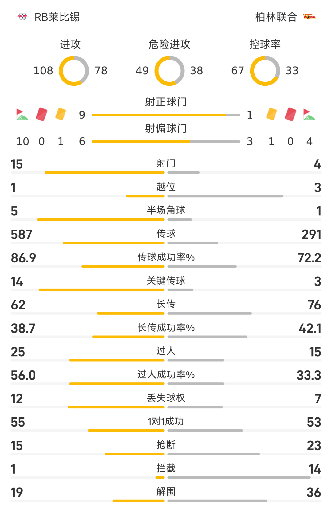 78’杜奇接应角球传中抢点冲顶破门,柏林联合1-3莱比锡