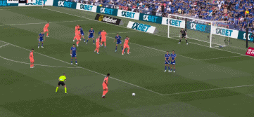 60分钟,奥尔莫推射空门被挡出,边裁示意越位。