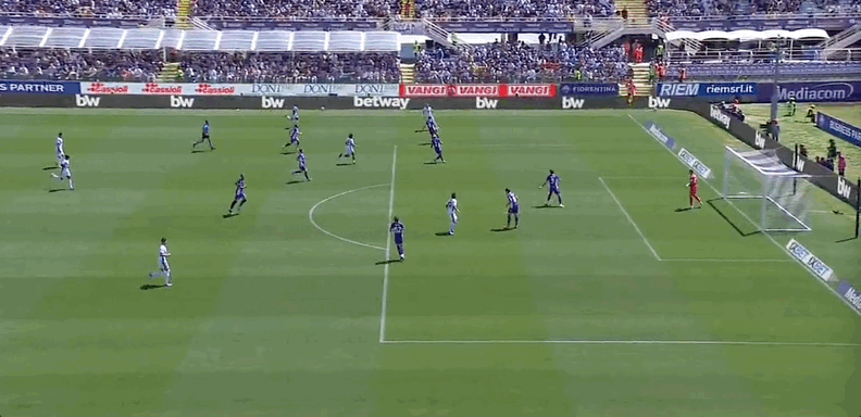 萨索洛首发阵容:13-图拉蒂、23-加西亚、6-瓦卢克维茨、21-伊泽斯、80-穆哈雷莫维奇、18-马蒂奇、42-索斯特维德、45-劳利恩特、90-科内、7-沃尔帕托、99-皮纳蒙蒂